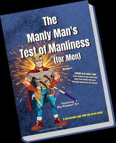 Our favorite wordsmith's latest project is a book (of sorts) featuring 50 funny multiple-choice questions designed to grade one's masculinity. It's basically a mock personality quiz for manly men to let them know their manliness score. If you like hardcore satire, this book's for you! Bonus: The Amazon order link below directly supports the author.